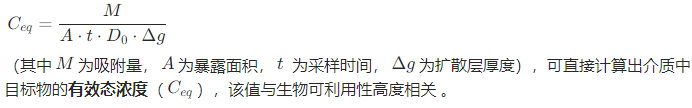 当 DGT 装置浸入环境介质后,目标离子在浓度差驱动下穿过扩散膜,在吸附膜表面被快速固定,形成浓度梯度。根据公式